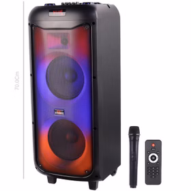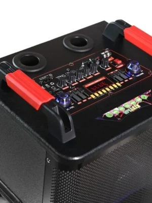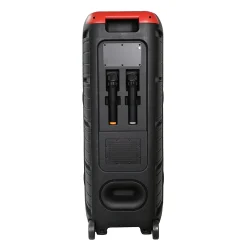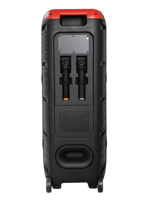 میکروفون بیسیم: وجود دو میکروفون بیسیم همراه اسپیکر، امکان اجرای زنده و کارائوکه را فراهم میکند.